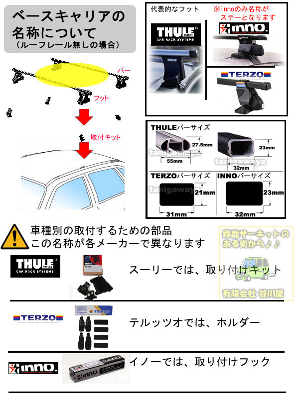 他のメーカーTHULEスーリーやTERZOテルッツオの場合は部品の名称が以下のようになります